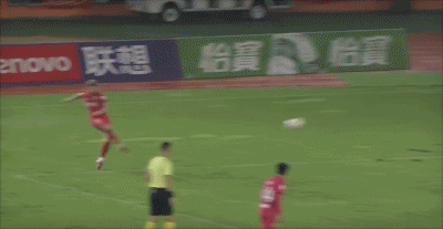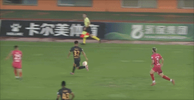第12分钟,孙锡鹏头球破门,青岛红狮1-0领先